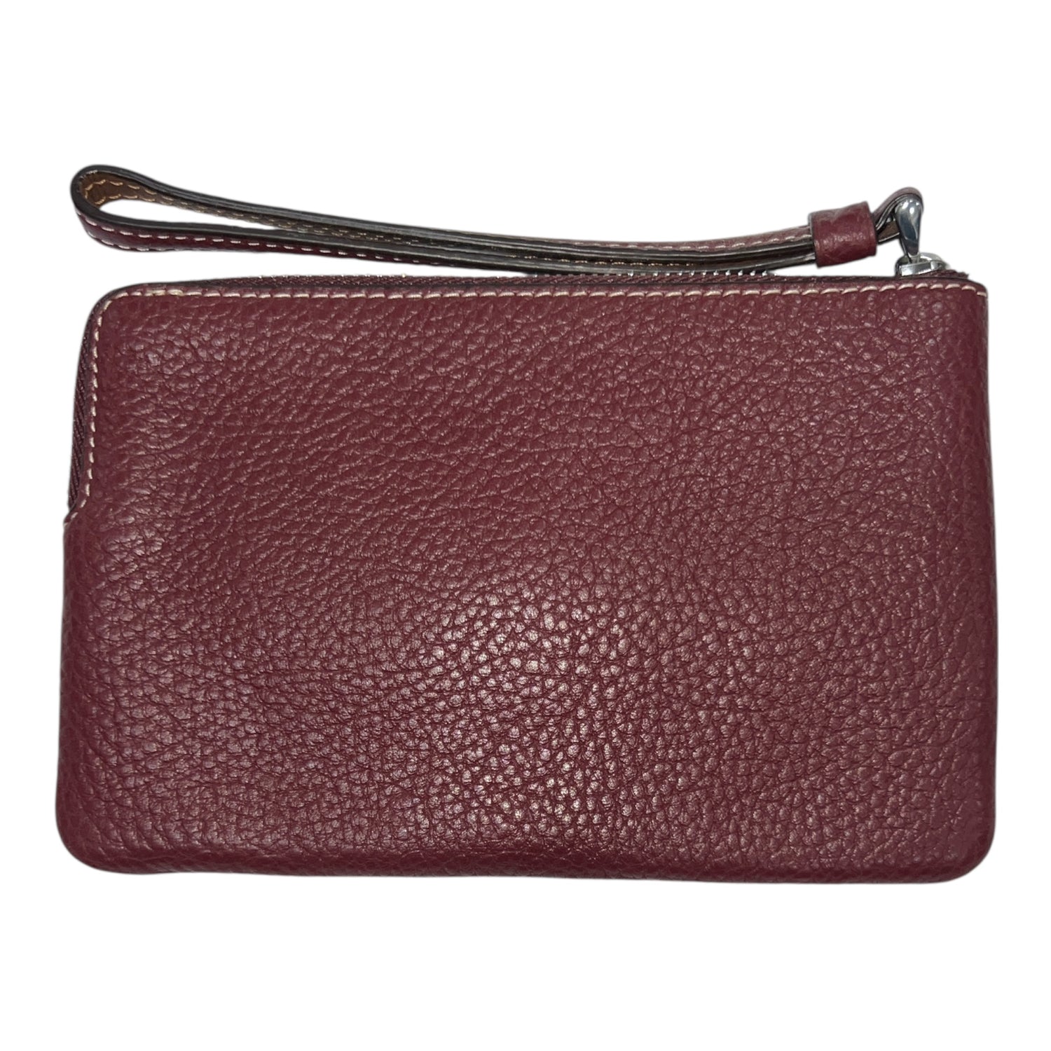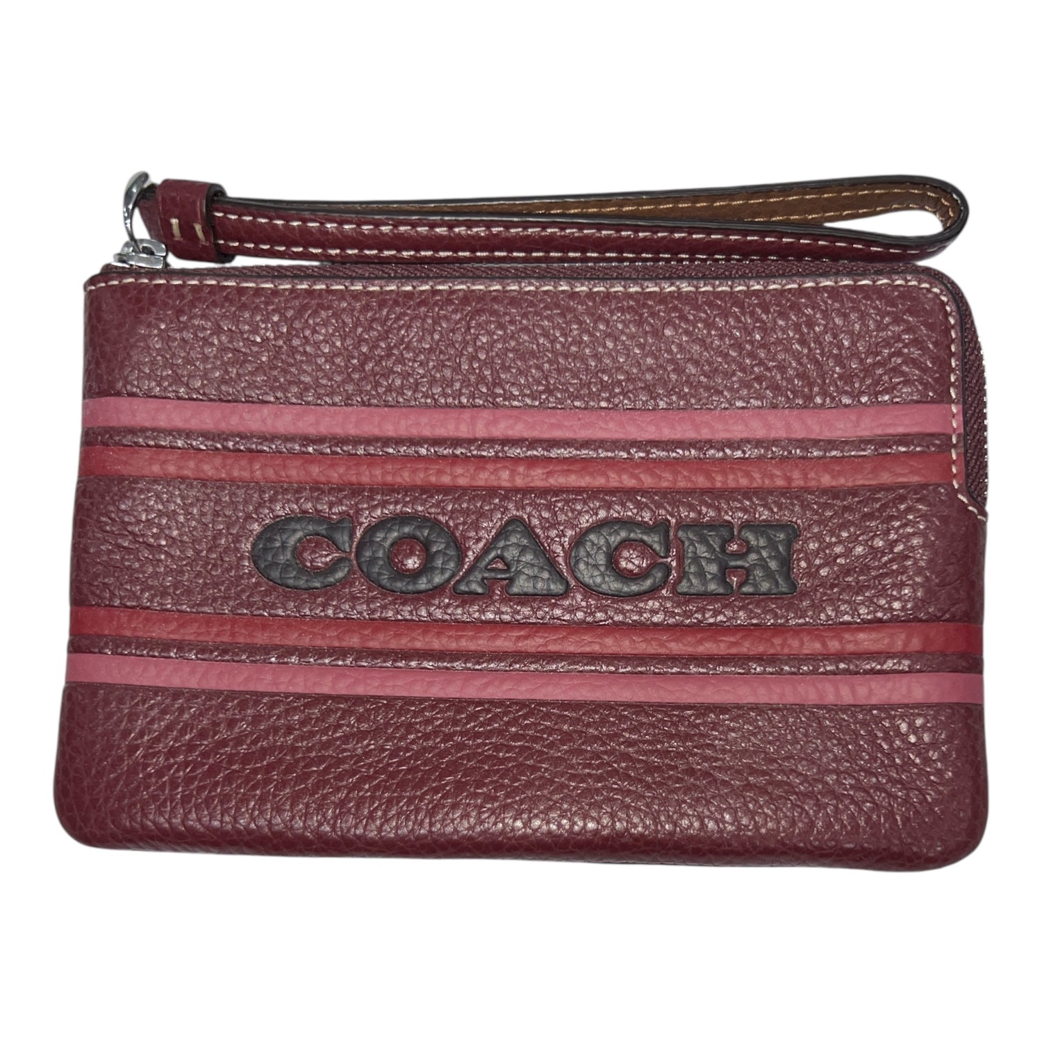 Coach Women's Small Pebbled Leather Corner Zip Wristlet with Coach Stripe (Wine Multi)